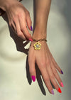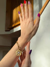 This piece has such a great presence on the wrist, with the charm dangling elegantly as you move. Best for a wrist 6” or less.