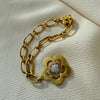 Who couldn’t use a little reminder of spring blooms? Enter: this fabulous European-made bracelet, bearing the hallmark HR. It certainly has the feel and look of a designer-made piece. It is constructed in a beautiful and buttery hue of 18k gold, the flower charm attached to the alternating oval link bracelet.