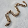 This beautiful antique chain may have been a watch chain in its past life, but it works excellently worn as a bracelet or attached to lengthen a necklace/chain. It is 8.25" in length total, but fits closer to a 7.5" wrist on the mandrel. Stunning details make this a super special and unique find!
