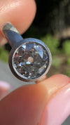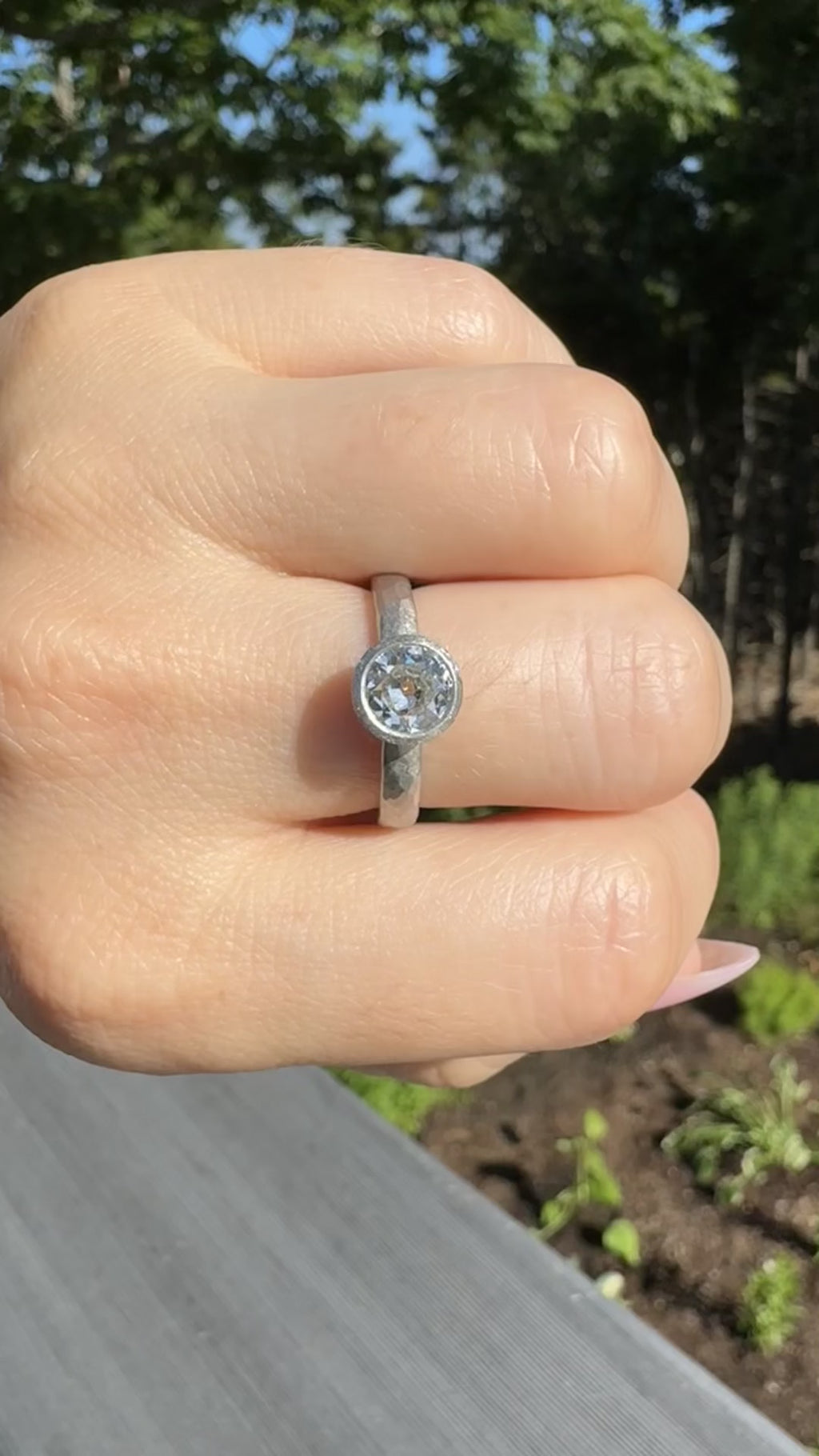 I've lovingly named this ring "Daphne" - she has held a place close to my heart as I have enjoyed wearing this ring thoroughly while I have her! It is deliciously weighty and has a lovely hammered finish on the band and thick, solid bezel. The diamond is a beautiful hand cut OMC (H-I, SI1) that sparkles so beautifully and faces quite white.