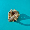 Whether you’re a Cancer ♋️ or have a Crustacean fixation- this special ring is waiting for you! It’s an incredibly detailed piece, c. 1960’s, with a beautifully rendered crab set with emerald eyes. There is so much to love about this fabulous and heavyweight ring- the texture throughout and its chunky shape immediately caught my eye.