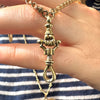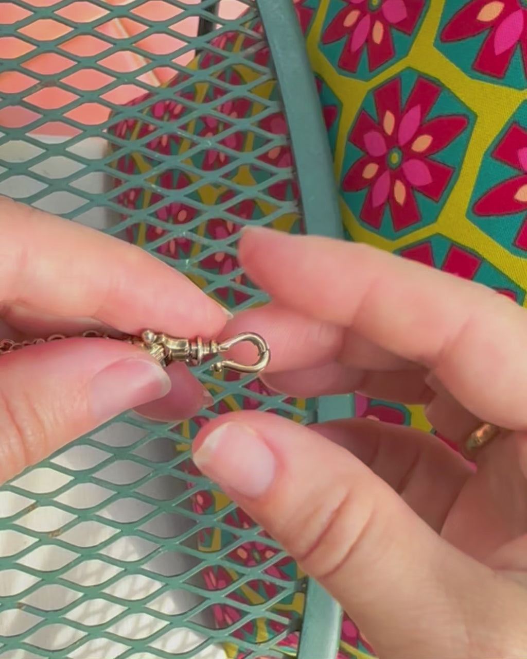 An exquisite antique 14k gold chain, distinguished by a distinctive hand clasp that opens and closes to add pendants or charms These clasps are notoriously rare and collectible- and go for well into four figures alone. A beautiful chain that can be styled in endless ways.