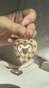 A fabulous oversized heart pendant, replete with natural sapphire and rubies in beautiful star settings. The center is attached via rings to allow it to move/swing. A "one and done" pendant for those who LOVE big.