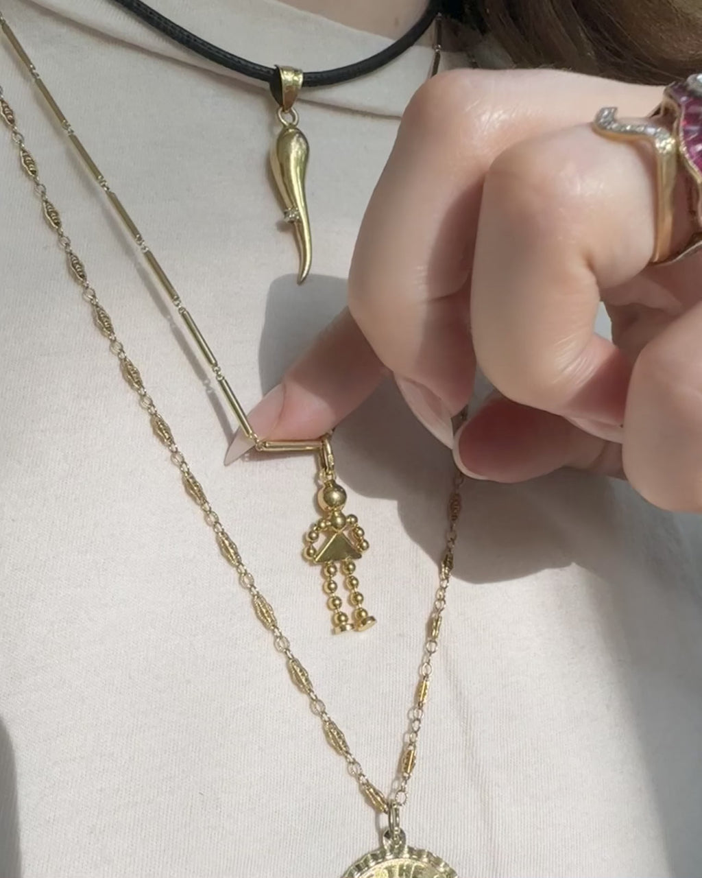 This little lady has moves! Such a fun charm, in yummy 18k gold with a large hallmarked bail. Measures .85" tall, 2.4g, and is nice and solidly made.
