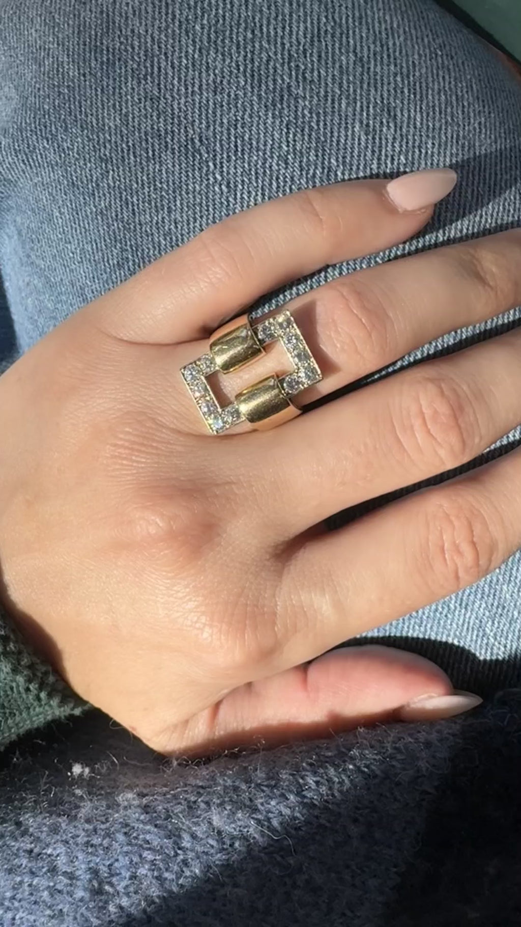 18k Diamond Rectangular Ring - 10.5g - Size 5 - .77” face - 1.68ctw of sparkling diamonds