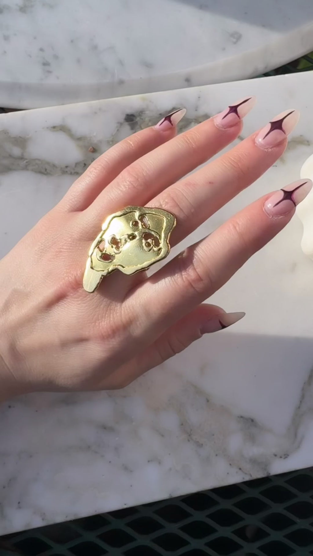 22k Jean Mahie Ring c. 1970’s - French stamps on outer shank - 19.7g - adjustable size, currently size 6 - 1.75” tall face