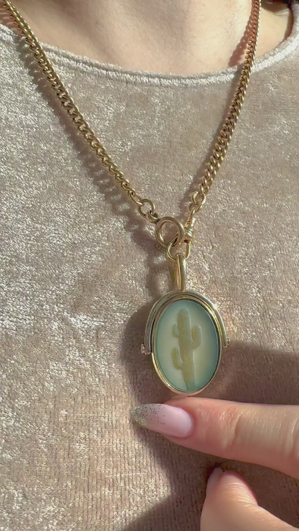 14k and Diamond Swiveling Catcus Cameo // “Don’t Be a Prick” hand engraved on the reverse - 14.2g - 1.5” incl. bail - hand carved agate cameo is 1”