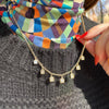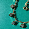 Glimmering, slightly graduated reclaimed diamonds set in handmade, heavy bezels hang from a solid 18k rolo chain to create this magical, bespoke necklace. I had been holding onto the parcel of carré cut stones for some time and decided to frame them with a round diamond in the center for a little touch of “je ne sais quoi.”