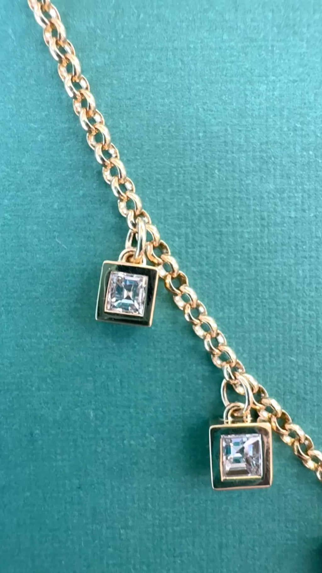 Bespoke 18k Carrè and Round Diamond Drop Chain (1.4 carats of diamonds, bright white and clean G-H, VS) - 10.9g - 2.05mm solid rolo chain - 17.5” long